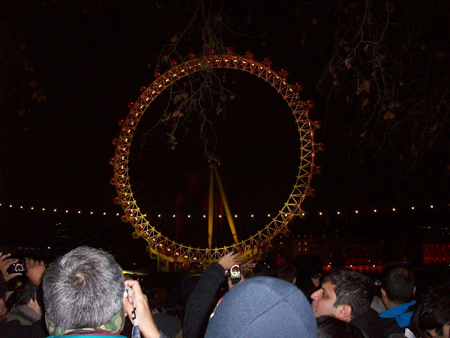 Vor dem Feuerwerk (wir standen direkt gegenüber des London Eye´s, also einen perfekten Blich gehabt) zeigte das London Eye eine beeindruckende Lichtershow.
